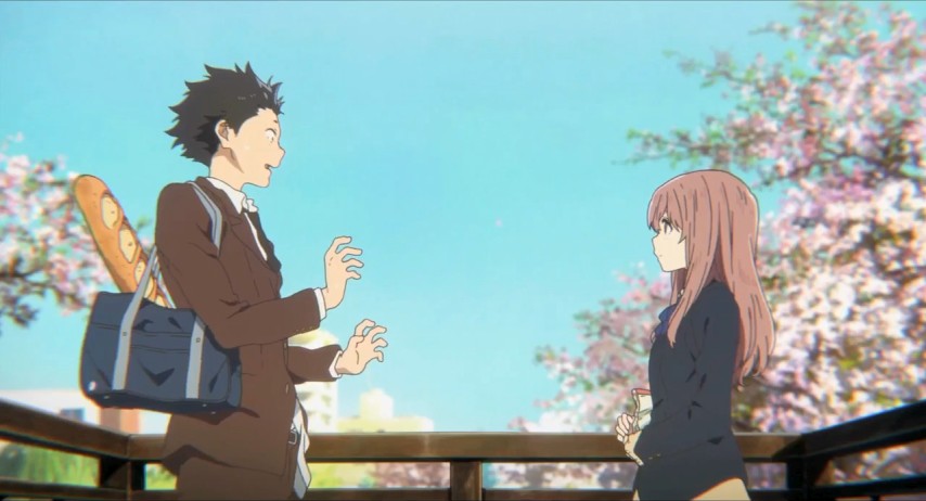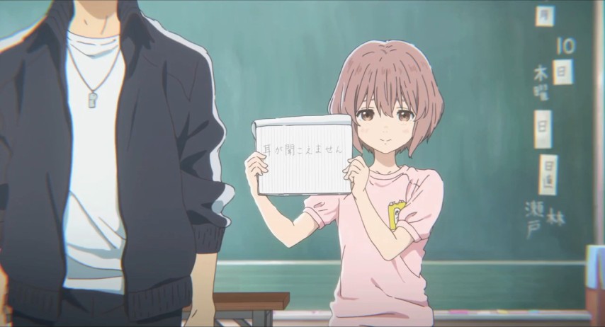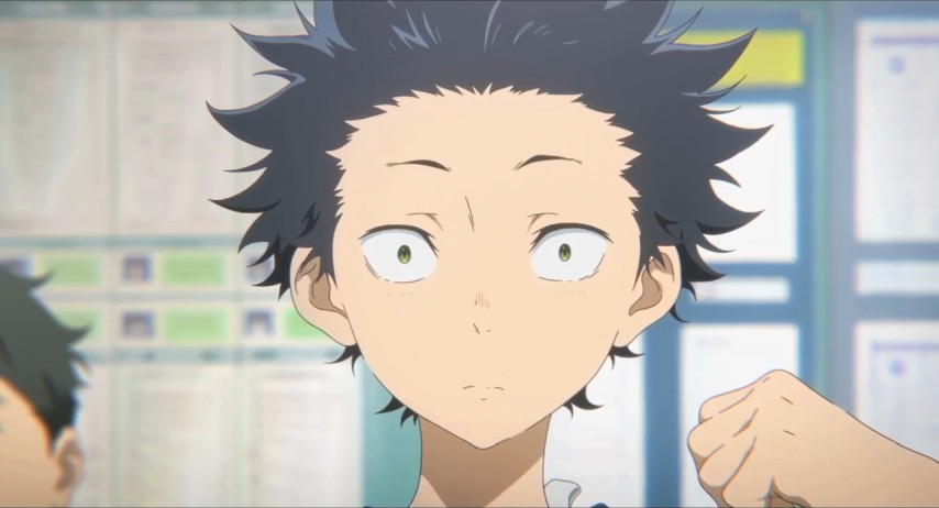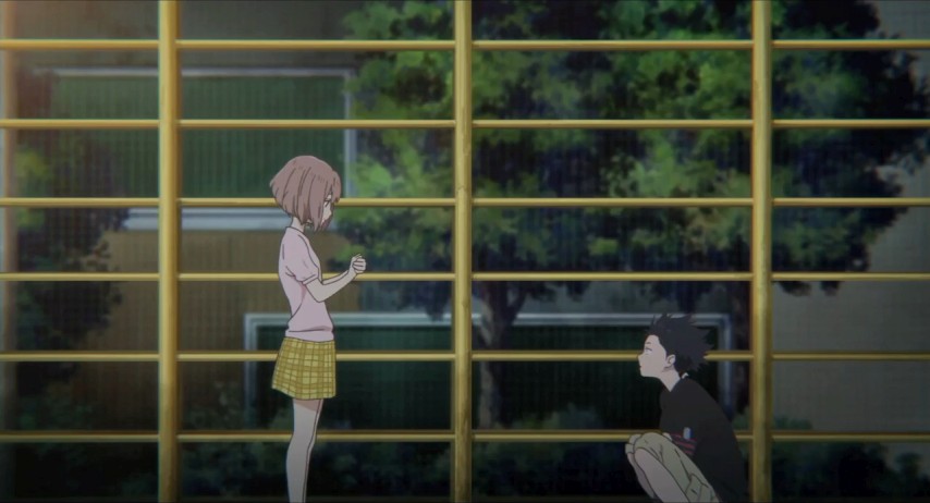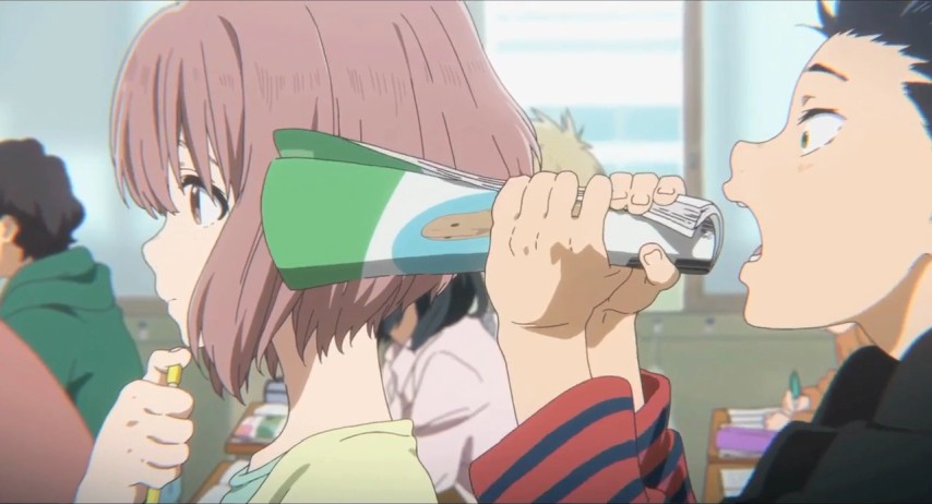 Shōya's a kid at the upper end of grade school who has little to distinguish him other than his restlessness and boredom. He hangs out with his friends, plays video games, does this trick where he extends the lead on his pencil to make it look like a hypodermic. One day a new girl is brought into his class, Shōko. She's deaf, ostensibly the only person in the school with such a prominent disability.