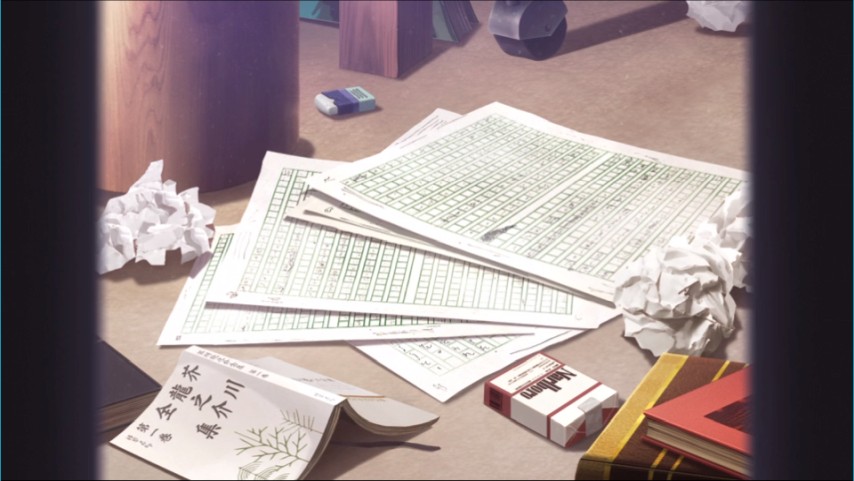 Akira learns about the depths and dimensions of Masami's unfulfilled dreams by degrees, and does not understand the significance of it all at first. One day she walks his son back to his apartment, finds him not at home, and stumbles across his study, crammed with books. Not just familiar material like the stuff she reads in literature class; his own manuscripts, too. Masami wanted to be an author, but a friend of his achieved great literary success while Masami got married, and their paths diverged in more ways than one. But all this time Masami has been scribbling away in private. Even if no one reads it, the act of doing it still means something to him.