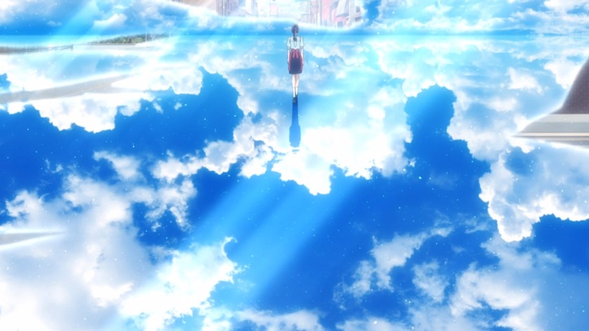 Characters in love are hard to depict well. They always run the risk of looking diminished and blinded by love, instead of empowered and elevated by it. Doubly so if they love foolishly, and the story they are in doesn't recognize how foolish love is a fundamentally tragic thing. After The Rain has its own ways of showing how its characters are made better by what they feel, but one element in particular stood out. Twice Akira fantasizes about having an embrace-and-kiss moment with Masami — once after their "date", and once more at the very end of the show, after she has run out after him (the mere fact of her running is itself an affirmation) to give him some missing paperwork.