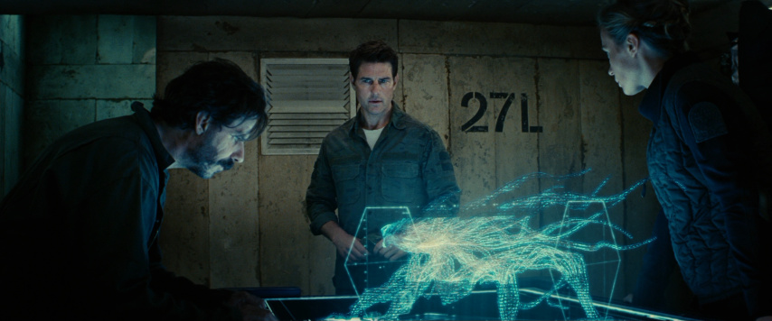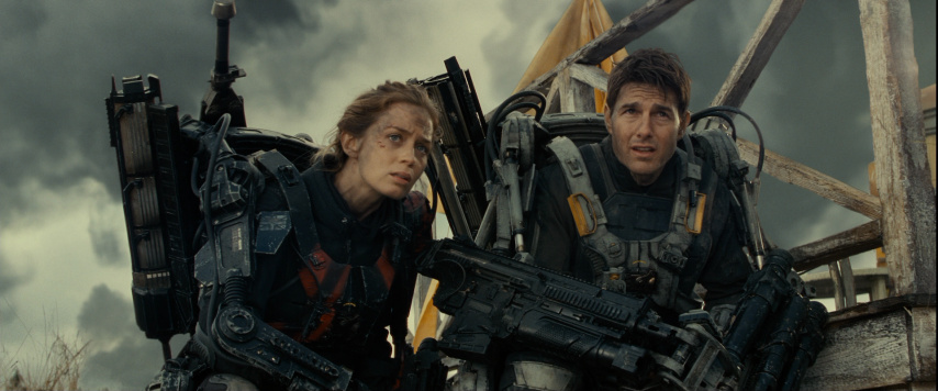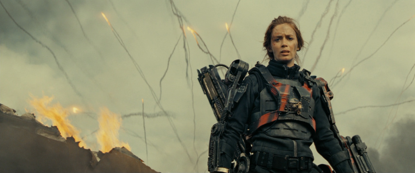 This strategy works in other ways, too. Through it, we learn to read the action for clues about how far along they've come (look for the line "I forgot to unhitch the trailer" as an example of this). The editing also helps generate some of the movie's biggest laughs, and as incongruous as it might sound this is a remarkably funny film, in big part because the humor isn't imposed on anything, but instead stems directly from the absurdity of the goings-on. Even better, though, are the ways the editing is used to creatively withhold information from the audience to generate suspense. At one crucial point Cage and Vrataski reach a dead end, where only one of them can go any further. Cage has been at this juncture before, and she always dies there, because her fighting instincts end up getting her killed. This leads to one of the most poignant exchanges in a movie filled with them, when Vrataski says "Why does it matter what happens to me?" and Cage replies, "I wish I didn't know you, but I do." (That leads to an even more heartbreaking sequence where he tries to go it alone, with consequences even more tragic than they might seem at first.)