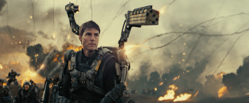 Converting Japanese greenie grunt Keiji Kiriya into Tom Cruise's Bill Cage (Keiji = Cage, get it?) was only the beginning of the changes. For one, he's no buck private; rather, he's a major, a slick-talking officer in the Army's media relations division who spends most of his time on TV as a talking head. When the war against the Mimics breaks out, he's the pitchman for the body armor used by the multinational fighting force to turn every G.I. into a walking war machine. Keiji was a kid about to get some callus on his palms (and his soul); Cage is a smug chair-warmer who squirms when asked to leave his seat and risk something. When he's ordered to join a camera crew and cover a major surge live and in person, he tries to blackmail his commanding officer into rethinking his strategy. Bad move.