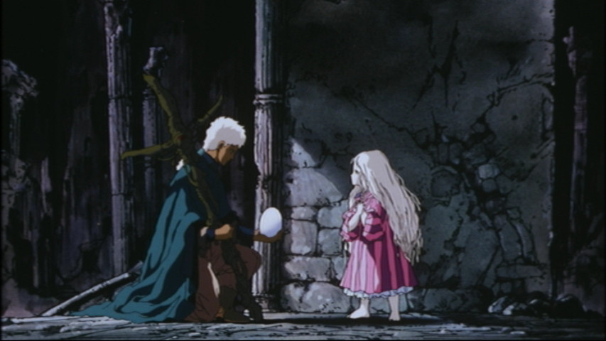 Mamoru Oshii's Angel's Egg is so heavily charged with meaning and symbolism, it practically dares you to make something of it. It seems foolish to write about the film without producing something akin to the I-think-this-means-that essays that swirled in the wake of Stanley Kubrick's equally enigmatic 2001: a space odyssey. Surely the whole point of talking about a movie this heavily symbolic is to talk symbolism, right?
