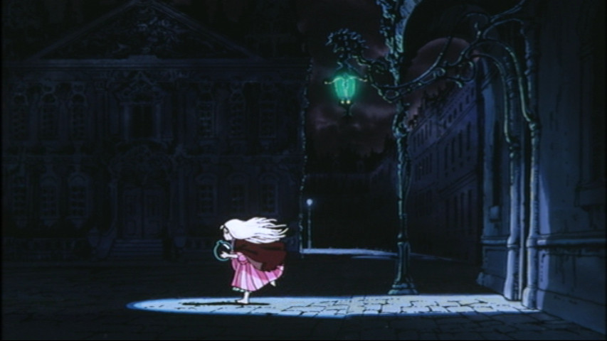 It's hard not to regard Egg through the lens of symbol or metaphor, in big part because it is so understated as a story. It is set in a great, deserted city that vaguely resembles Prague, where everything is dark even in the daytime and every street seems like a blind alley. The only inhabitant — in fact, the only living thing, it seems — is a white-haired urchin-like girl, who salvages canned goods and jars of marmalade from the shops and saves endless jugs of water. She also guards her most prized possession, an egg about the size of a human head, which (in one of the film's most blatant bits of symbolism) she takes to carrying around underneath her dress as if she were pregnant.