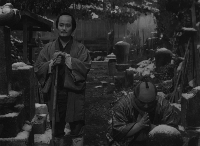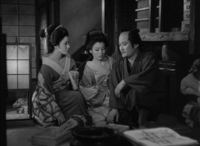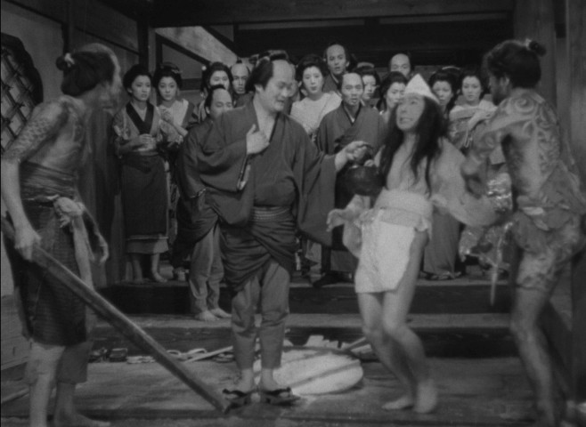 At first the film seems plotless, although not aimless. One thing follows another, with Saheiji serving as the most consistent axis around which everything else revolves. The, gradually, threads accrue. The cadre of samurai insurgents enlist Saheiji into their plan against his will. Saheiji intervenes to help Osome and Koharu work out their problems, even if they are largely of their own making. And he also does his best to help the carpenter's daughter get out of a bad situation, although the way he does it is also questionable — and from what we can see, the girl may end up only marginally better off.