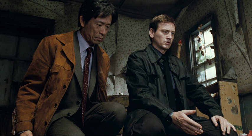 Schroeder's film takes this efficient little thriller, moves it into the present day, and modifies it for accessibility by Western audiences. The first of those changes I don't have a problem with, but the second one strikes me as superfluous: as The Girl With The Dragon Tattoo proved, where something comes from isn't as important as what it tries to do. Here, the main character is now French mystery/thriller author Alex Fayard (Daniel Craig-esque actor Benoït Magimel), slightly smug and self-satisfied as he's recently scored a double win. He's not only gotten his most recent book published in Japan to great sales and critical acclaim, he's had it published by the same company that puts out reclusive author Shundei Oe — and with design and typography that deliberately brings to mind Oe's own books.