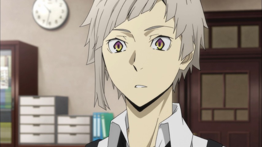 Into this not-always-disciplined circle of do-gooders comes the hapless Atsushi Nakajima. In real life he was an author who died relatively young of pneumonia; in this setting, he's an orphan, at home nowhere due to his power "Beast Beneath the Moon", with which he can transform into a powerful, nearly indestructible white tiger. His lack of control over the power has left him feeling like a human wreck, but the Agency gives him a place to be and a way to discipline his powers in their service.