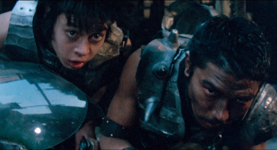 Many of the improvisations Ishii and crew brought to the film weren't about some self-conscious adherence to a punk aesthetic. They were sheer desperation. With the filming budget exhausted, and with some narrative scenes still not in the can, Ishii bridged the remaining gaps in the storytelling with experimental imagery, along the same lines as that infamous concluding episode of Evangelion. When Ishii got kicked out of the place where he was living, he and friends used connections at NHK's editing studios to finish editing the film there after hours, sleeping in the restrooms, burning 55 gallon drums of midnight oil to meet the film's set-in-stone release date.