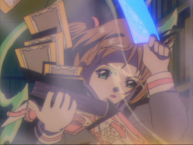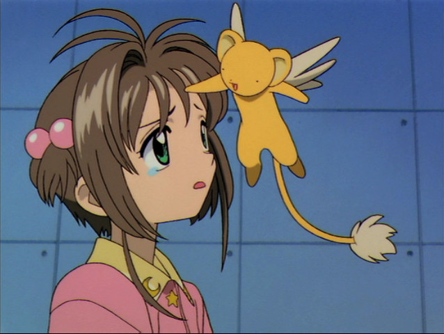 One night Sakura mistakenly opens a Pandora's box of sorts — the fact it is something she finds in her own house is glossed over for the time being — and looses a deck of magical cards into the wild. Unlike Pandora before her, though, she's tasked with the job of cleaning up the mess she's made, lest great calamity befall the world. Her taskmaster is the "Keeper of the Seal", Cerberus, who resembles a little yellow stuffed toy lion and is rather irked at how his minimal levels of power at this time only allow him to incarnate as something that innocuous ("Kero-chan"). Part mentor and part best pal, he provides Sakura with a magical wand to track down and retrieve each of the cards, and comments on all her progress, or lack of same, in a chirpy Kansai dialect that's all the funnier for being so incongruous.