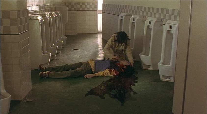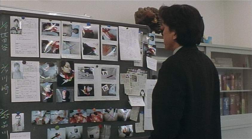 The abstract for Cure reads like the plotline of any number of overheated serial-killer movies that came and went in the wake of SE7EN and Silence of the Lambs. Takabe, a detective (Kōji Yakushō), has been assigned to a case involving a series of murders, each committed by completely disparate people but each with the exact same methodology: the victims have a large X-like mark cut into their necks. Even stranger, the killers seem to have had no rage or particular incentive for the crime: it simply happened, like “the work of the devil”, in the words of the detective’s partner. A young schoolteacher kills his wife, a policeman shoots his partner in the back of the head—all without motive, or even much in the way of caring.
