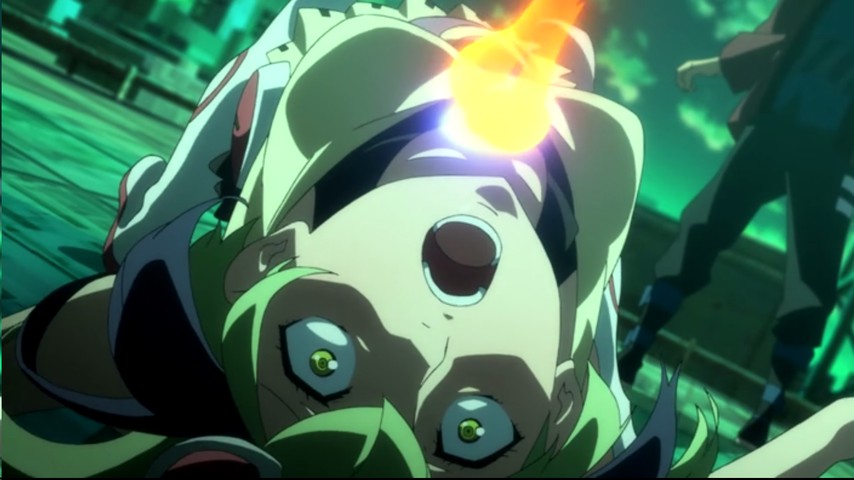 One night while on a mission, Kyoma crosses paths with Mira, a girl who turns out to be the robot creation of the scientist that founded New Tesla. She was stealing Coils for Dad, and now the old man has gone missing in some kind of catastrophe that shut down Coils for miles in all directions. Much to Kyoma's disgust, Mira ends up becoming his sidekick (he calls her "junkheap") and apprentice of sorts in the Coil-hunting trade. Eventually their work turns up a slew of coils printed with enigmatic numbers — referred to as, you guessed it the "Numbers" — that have significance for both Kyoma and Mira, and point back into their respective histories. You never bring in a character who's missing a big chunk of his memory (Kyoma, in this case) without that becoming something to reveal.