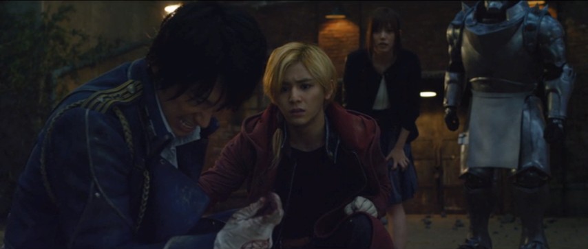 I did my best, going in, to ignore how the casting might create aesthetic and cognitive dissonance. And for the most part, I found it all mattered a lot less than I thought it would. Most of the cast is more than up to the job: Ryōsuke Yamada makes for a credible, tightly wound Ed, and Yasuko Matsuyuki is excellent as the Homunculus appropriately named Lust; she could have vamped it up, but instead she holds back, and consequently it's more effective. I also liked Ryōta Satō, jolly and warm as Maes Hughes, who has all the moments with his family, and one involving a phone booth, that we expect from the character. (Veteran actor Jun Kunimura, a favorite of mine, also shows up as Dr. Marcoh.) Many of the individual moments with these characters work, if only as moments.