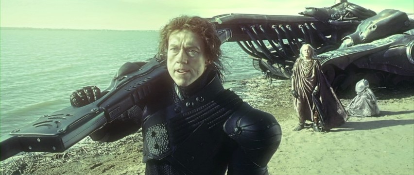 One fine day the Columba encounter a Kumtak ship hoofing it from a pursuing Brigga division. The refuge is the elder Wydd (Lance Henriksen, mostly wasted), and his savor is a Columba pilot, one of a team of identical clones named Kiakra (Mélanie St-Pierre). Wydd has with him in tow a "Druid," a source of great mystical power that was supposed to have been rendered extinct ages ago. He also has a mystical companion — Oshii's signature basset hound, who earns the movie's sole laugh when he stops to pee. Kiakra and the dog take a shine to each other, and so she goes off poking around looking for him when Wydd takes over the ship's computer and narrowly avoids being taken down by a Brigga commando brigade led by the square-jawed Skellig (Kevin Durand). You following all this? (If not, it's explained to us in some of the most heavy-handed voice-overs and opening narration since David Lynch's Dune.)