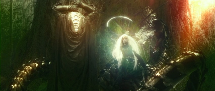 Eventually, we end up with a road trip of sorts: Kiakra and Skellig agree to put aside their differences long enough to take Wydd to a grove of mystical significance, where he can essentially plug the druid into the spirit of the departed god, or something, and reveal to all of them why he left all those aeons ago. Meanwhile, Kiakra and Skellig engage in a classic Oshii-ism, where they sit around and talk earnestly and at paralyzing length about things the movie will ostensibly call its themes (memory, identity, the usual bag of Oshii obsessions). By the time we get to the end, we've been well-prepared for how crushing a disappointment it'll be, given how much of a letdown the movie has been up to that point too.