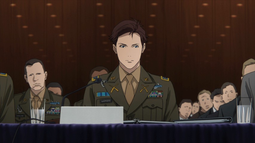 The net result is how things that are supposed to be electric and terrifying sometimes just fall flat. One scene near the beginning involves a Georgian military man, confessing to Clavis about his role in the genocide taking place in his country. At first he's proud, but then confused, and finally horrified: it's as if all this was done by someone else. The scene is meant to have power, but the murk of translation and the stiltedness of the line readings get in the way. Paradoxically, the whole thing doesn't seem as awkward when watching in Japanese with English subs. Maybe the lesson here is how such dialogue always works better when read in any form than when heard.