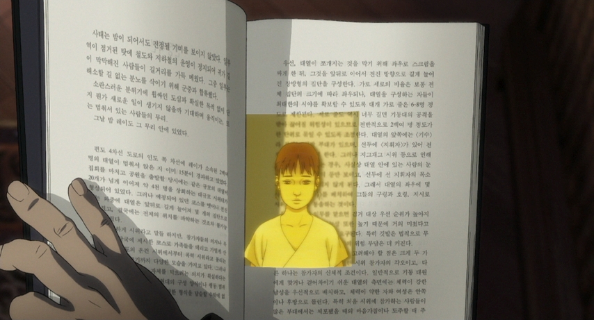 I get hung up as much as I do on Oshii's failings for three reasons. First is that someone this ambitious and with the resources to realize such visions shouldn't end up in what amount to such aesthetic cul-de-sacs. The other is a more general observation about the way stories embody meaning — we find meaning in stories because they are stories, not mere containers for ideas and events. They are the embodiment of a process of life, a reflection of the way we ourselves organize and make sense of things. That process reflects truth more than it does facts, and so every story is automatically biased, one-sided, part of a larger cultural back-and-forth. But that's fine; as long as you are making the attempt, that's what matters. Oshii always seems to want to skip the whole process and cut right to the truth behind it. Trouble is, you can't disentangle the truth being presented from the presentation. How things are told are a big part of what's told at all.