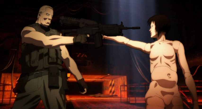 Oshii's biggest problem, aside from not seeming to be all that interested in storytelling as such, is that he doesn't seem to know the difference between a) a story where people just recite windy philosophical dissertations about a subject and b) a story where the subject is the story. This is bad enough when Oshii does it with characters of his own creation, but it's miles worse when he does it to the likes of Kusanagi and Batou and Togusa. What did they do to deserve this?