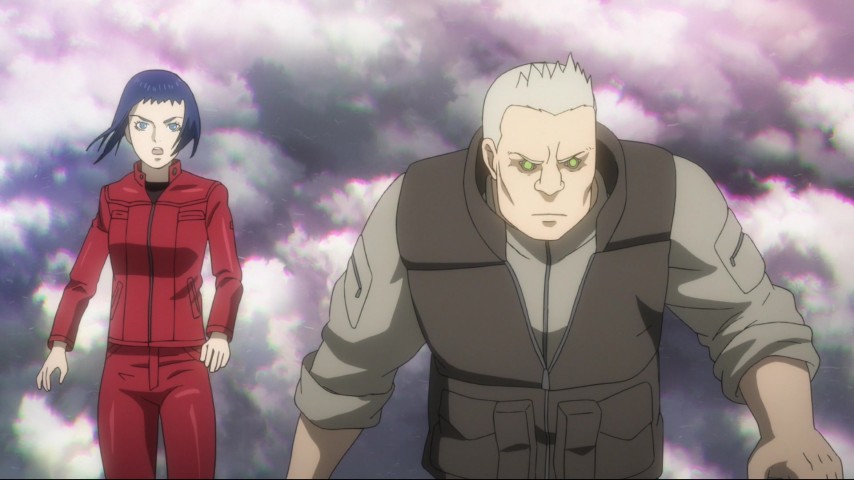 The plot this time around is no less complex than before, but thanks to its emphasis on action rather than character or concepts, it's possible to boil it down a little more succinctly. A military man has been sentenced to death for committing war crimes, but before he can be executed, he hacks the city's transportation grid and brings everything to a standstill. Motoko Kusanagi, now under the command of Chief Aramaki, is sent in to investigate, and in the process arm-twists a few enemies into becoming potential allies. Among them is Batou, still uninterested in making a full-blown allegiance with her until she plays the sort of hardball with him we'd expect Aramaki to be pulling.