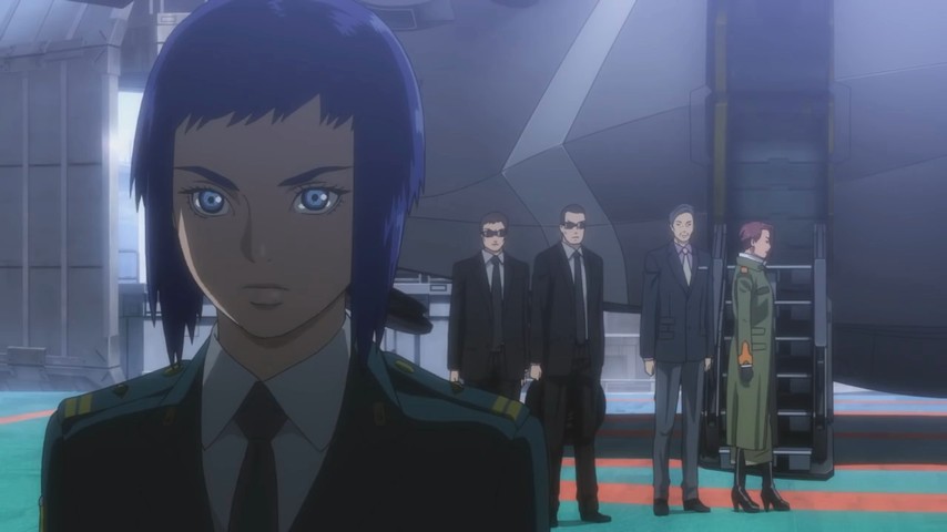 ARISE ended with Major Motoko Kusanagi (human brain, robot body) having assembled her team of special agents for a near-future Japanese government, funded by an off-the-record budget. Their first mission involves two apparent terrorist incidents that take place back-to-back on the same day. First is a cadre of former military men — resentful of the government that has summarily cashiered them and left them without a future — who take hostages. Motoko and the gang swing into action and make short work of the kidnappers, but someone who looks exactly like Motoko is seen leaving the scene ... and moments later, the Prime Minister and Motoko's former commander, Kurtz, are both killed by a suitcase bomb on the other side of town.