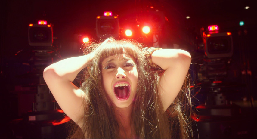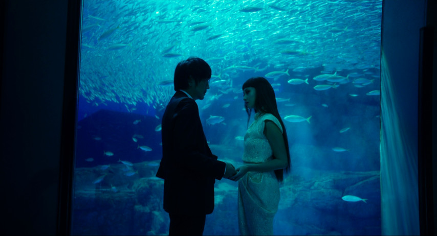 What director Mika Ninagawa did for the live-action adaptation of this story, though, seems like a deliberate reaction against such an approach. Instead of paring things down, she builds them up, cramming every shot with color and glamour and flash — until, as you might imagine, it becomes suffocating and dizzying, nauseating even, and again, not enticing. Ninagawa's earlier Sakuran, also an adaptation of a manga, employed a similar tactic, but as a way to depict one character's brassy defiance of a melancholic decadence: ts Edo-era red-light-district story was saturated with actual red lights (and lights of plenty of other colors) to the point where what would nominally be enticing became faintly repulsive. With Helter-Skelter, Lilico's world — her lurid point-of-view shots, her overdecorated apartment, the sterile operating-theater environment of her dressing room — are all put in hard contrast to the more mundane rest of the world.