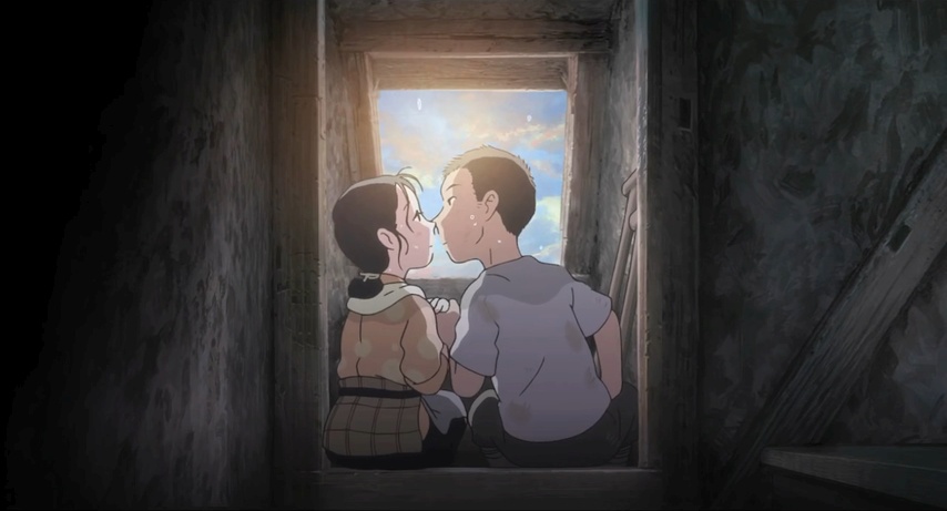 That Suzu can no longer draw is nothing compared to the rage Keiko feels towards her, or the way Suzu now feels all the more inadequate and useless as a human being. But Suzu is ultimately determined not to let circumstances dictate her life; there's a lot you can still do with one and a half arms. At one point a firebomb smashes through the roof of their house, and she smothers it singlehandedly, both literally and figuratively. (It helps that the bomb is a dud.) But when the war ends and Japan declares its surrender, there is more despair than relief, as Suzu and the others wonder if all their endurance was for nothing — although life has a way of providing them with reaffirmations of one kind or another.