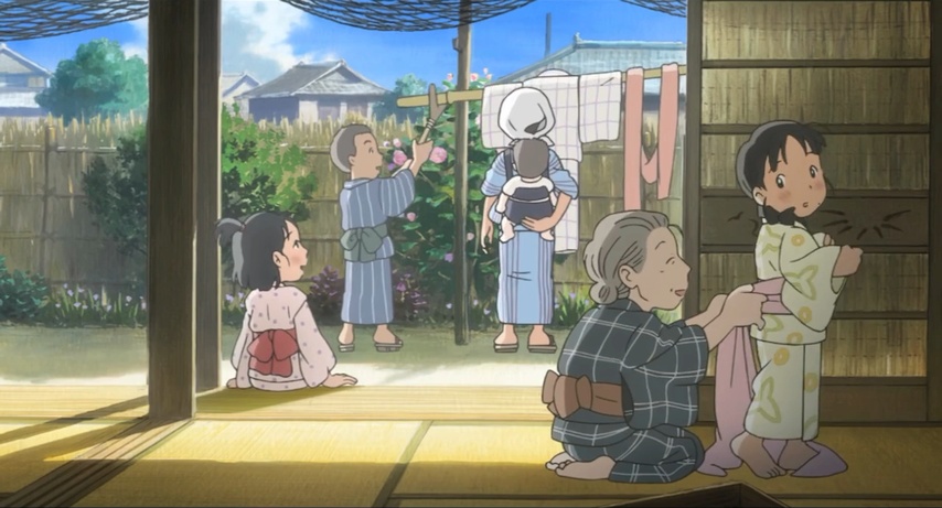 A third issue that could have derailed the movie is its handling of the bombing of Hiroshima. When it does happen in the film, it's mostly offscreen. Then, towards the end, there is a flashback to it from the point of view of another character, a girl who wanders the ruins and is eventually taken in by Suzu and her family. We see just enough of the horror, and in just enough of the right way, for it to matter; what becomes more important than the horror itself is seeing how everyone chooses to cope with it.