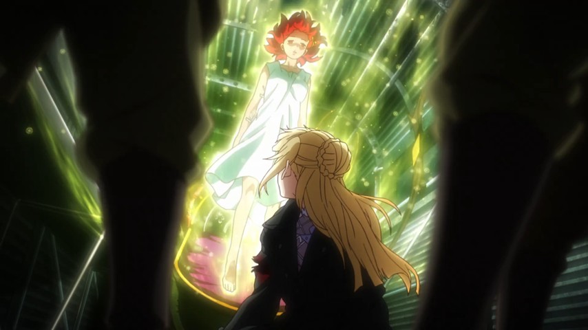 Izetta does, to its credit, try to deal with the other major horror of WWII — weapons of mass destruction, with Izetta herself being one such weapon. But the storytelling and the characterization crumb that play, too. At one point it's flat-out stated that Izetta, and the nation she fights for, could easily become the most powerful entities on the face of the earth. The fact that the only thing Izetta and Finé seem motivated to do with such power is ditch it speaks more about the incuriosity of the story than it does of their goodness as characters. Again, the story never really becomes about those things, and again, no tension comes from anything around it. The worst thing that happens to Finé's resolve is that she gets a little depressed and Izetta slaps her out of it. And then what genuine tension does get built up in the climax — all of it mechanical tension around whether or not she'll pull off her big gamble — is then set on fire and thrown gaily out the window by that awful ending.
