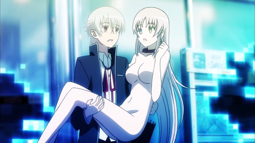 The resulting damage to the story because of these bad decisions early on means that things which should make sense later just come off as additional self-indulgences. Case in point: Shiro's cat, Neko, who transforms between being a cat and a, well, cat-girl. She, in one of the show's fitfully clever throw-away culture-reference moments, introduces herself with "Wagahai wa neko de aru!" But she seems to serve no purpose in the story other than to be an irritant and a bit of fanservice — every time she transforms, she's naked, ha ha — and by the time her function becomes clear, the show's already earned itself a reputation for being too arbitrary for its own good.