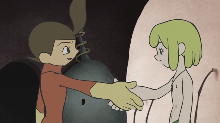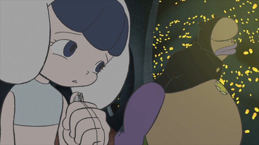 A lot of what goes on in the Kaiba-verse demands to be explained as we go along, but much of the time Yuasa prefers to just show us, via imagery or pantomime, and trust us to figure it out. George Lucas dabbled in things like this via the non-verbal, experimental mode he used early in his career (THX-1138, and even parts of the first Star Wars), but Yuasa never abandoned the experiment.