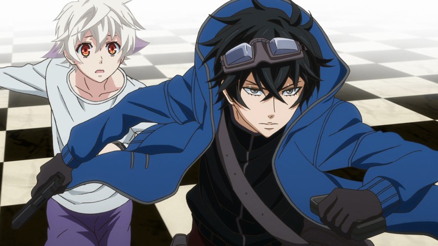 This all ought to be more fun than it actually is in the show, and part of the problem is the way we're introduced to the story: by way of not just one, but two outsiders. The first is Gareki, a don't-give-a-damn cat burglar who's in the process of robbing a mansion when he runs afoul of a Naruga passing as the woman who lives there. The second is Nai, a pale-haired boy caught in the clutches of the Naruga right as Gareki drops in. Gareki is not interested in playing babysitter to anyone, especially not this amber-eyed waif, but Nai's got some curious abilities that seem slightly beyond human ken that come in handy when they find themselves on board a train held hostage by mad bombers.