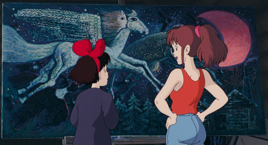 But other people can always see things in us that we can't, and it's that perspective Kiki is able to draw on to find herself when things are at their worst. And for her, things get very bleak indeed: she loses her power of flight; she's unable to communicate with Jiji (who's got his own crush on that gorgeous white Persian living next door); she questions what function she has in the world without being able to do any of those things. As it turns out, she still has a great deal — and channels them to get back into the saddle when disaster strikes.