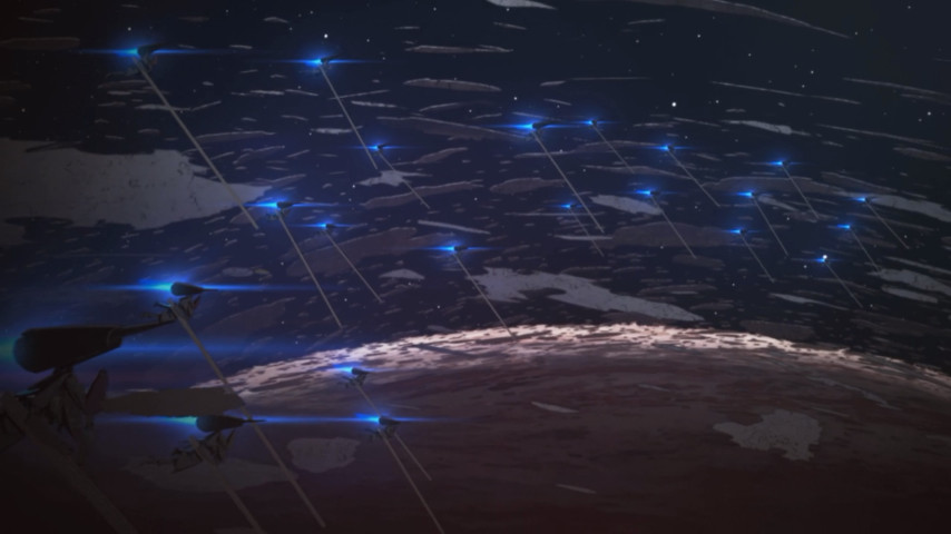 What's odd about Sidonia, though, is that it invites comparison most closely not with any of those things, but with another production that has been unfolding in parallel with it and thus unlikely to have been an influence on it: Attack on Titan. That show, too, dealt with the remnants of the human race sealing itself up behind walls while sending young, hot-blooded, horn-locking fighters to risk their lives against enemies of implacable hostility, mysterious origins, and unexpected abilities. In retrospect, though, that seems more a case of Titan being patterned that much more closely after all the properties Sidonia itself owes a debt to. The common roots look all the more common in the right light.