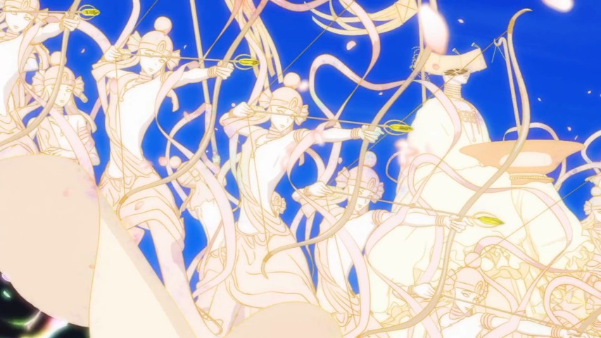 The Lunarians appear every few days, manifesting in the sky by way of what looks like a giant black inkblot (they call it a "sunspot"). They look like the hosts of bodhisattvas seen in Buddhist iconic art — one large one surrounded by many smaller ones wielding weapons. They never attempt to communicate. All they ever do is appear, attack, try to smash as many of the gemstones as they can, and take them back with them to be turned into weaponry. They're not that hard to defeat — the gemstones can usually take them out with a few well-placed sword blows — but they never stop coming, and they grow trickier and more persistent with each generation. Fortunately, the gems are quasi-immortal: even if smashed to pieces they can pick up where they left off as long as someone collects enough of the bits to stick them back together. But if some of the bits go missing, so do some of their memories.