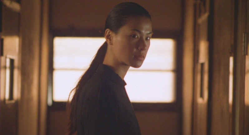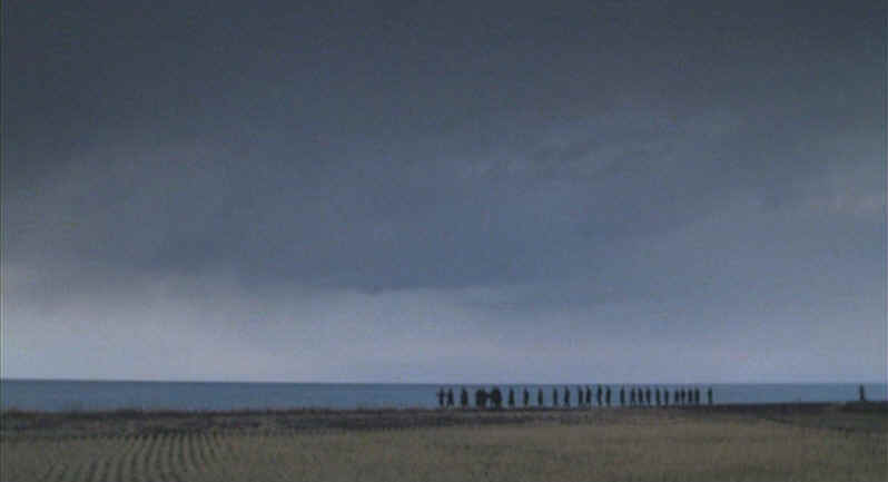Japanese authors have terribly hit-or-miss publishing records outside of Japan. Maborosi is an adaptation of a 1978 short story by Teru Miyamoto, who's been lucky enough to have that story, several others, and two of his novels all translated into English at various points. The original story is told as a first-person reminiscence by Yumiko, as a sort of confession to her dead husband. Kore-eda did not try to reproduce that effect, but he did hew remarkably close to the story's events, including much of its dialogue. Before reading the original, I speculated if the distancing effects Kore-eda used were also meant to reflect the original material; perhaps the story would have the same minimal, spare language of a Raymond Carver short. But all that is a stylistic choice on Kore-eda's part. Likewise the funeral march and seaside pyre that climax the film; they may be his idea, but they are entirely expressions of the story's original spirit by way of film language.