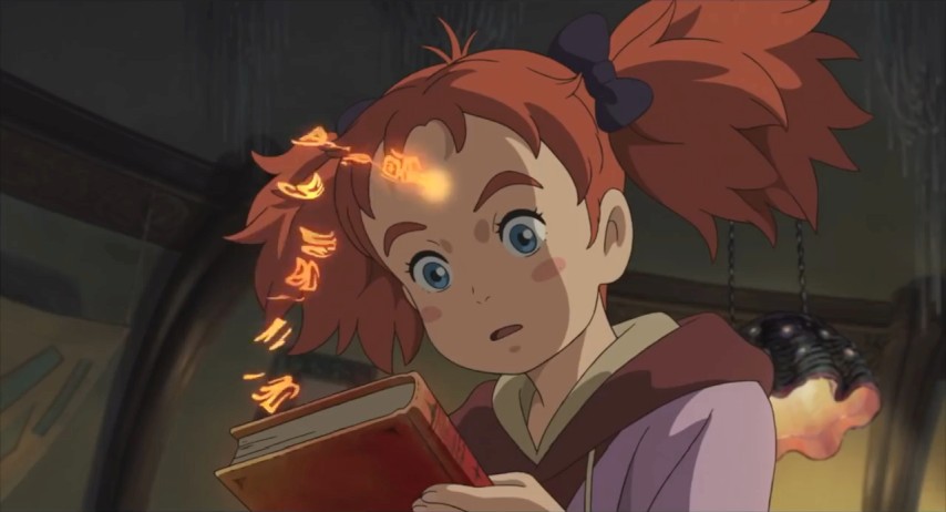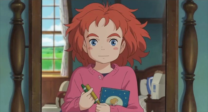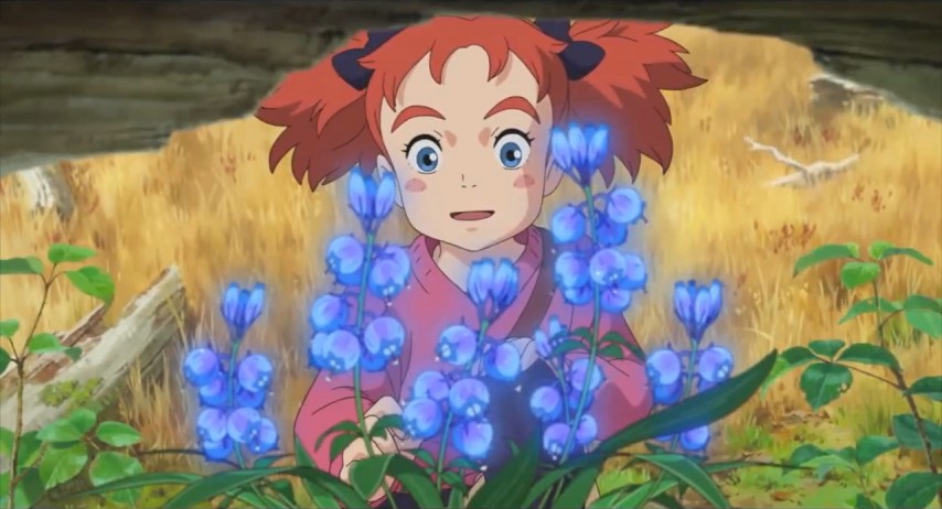 The Mary of the title is Mary Smith, freshly relocated to the country ahead of her parents, living with her great-aunt in a bucolic part of the countryside. Mary, with a mop of unruly carrotty-red hair perpetually askew, is squarely in the long-standing tradition of Ghibli Girls: young, feisty, a little too headstrong for her own good. She wants very badly to be useful, only to find that the gap between her skill and her enthusiasm is frustratingly wide. Most everything she does that's meant to be helpful ends in a mess that someone else resigns themselves to cleaning up. None of this endears her to Peter, a local boy whose teasing may be cover for actually liking her.