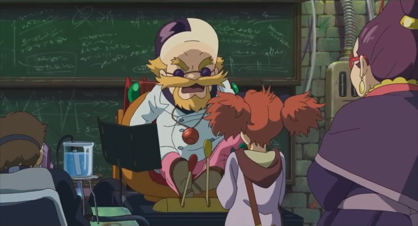 It's all but obligatory to talk about the quality of the animation when dealing with anything Ghibli-related. Their work, and the work of Ponoc in turn, is not always the most adventurous — for that you want the likes of Studio 4°C or MADHOUSE — but it is consistently some of the most polished, endearing, and eye-pleasing. Mary only feels like it has so much room for being inventive in its look and feel, since most of the fantasy material is pretty familiar territory by now — not just by way of Harry Potter, but other recent anime, too (Little Witch Academia). But the craftsmanship, the painstaking care shows through in how they depict everything. Not just Doctor Dee's crazy-quilt chimeras, which look like refugees from Fullmetal Alchemist (you see how easy it is to stack up the outside references?), but simple things like the way sunlight and wind can sweep unevenly across a meadow. And then there are those trademark scenes of great spectacle, as when Mary frees the animals from Dee's lab and leads them on a stampede across the land.