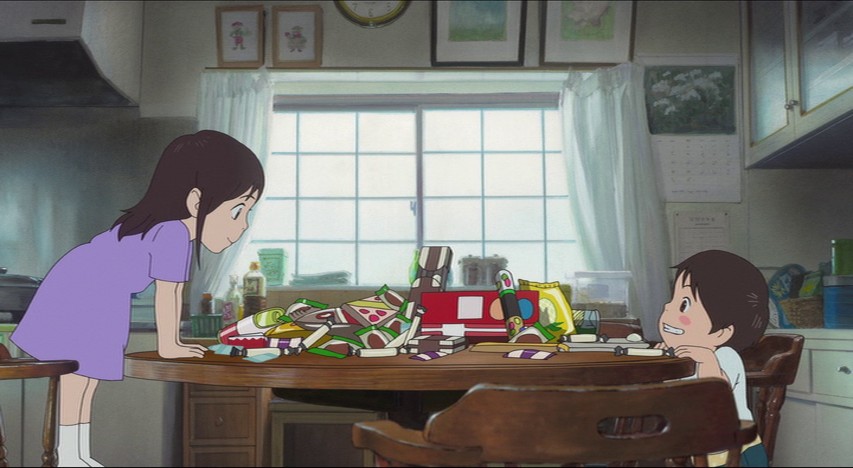 It gets worse. Every time Kun goes through another round of jealousy / resentment / tantrum, he's drawn into a flashback to another part of time: a flashback to his mother's past, his grandfather's life, and so on. The idea, I guess, is that these experiences teach Kun a Lesson In Empathy, but the lessons are so on the nose they become agonizing to sit through. Kid envies sister, kid gets a lesson from sister-out-of-time. Kid resents mom, kid gets a lesson from mom-out-of time. Kid hates dad for favoring Mirai ... you get the idea. What humor or wit there is in this setup is entirely situational; it's not extended to the whole story, which we learn to dread returning to.