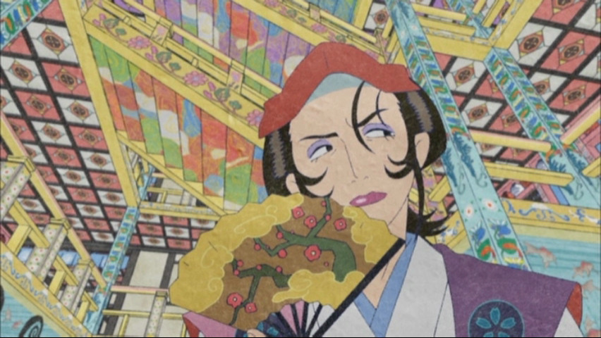 Director Kenji Nakamura was not only responsible for The Big O, C: Control, and the underappreciated Trapeze, but also directed another series, Ayakashi: Samurai Horror Tales, which Mononoke is generally considered a successor to. With Ayakashi, the storytelling was far better than the stilted animation — and a shame, too, since the great Yoshitaka Amano had a hand in the design work. Unfortunately, his style either didn't translate well into animation or wasn't put in the hands of a crew that could do justice to it. Mononoke feels like a refinement of that series, both in terms of how it's dramatized and how it's presented.