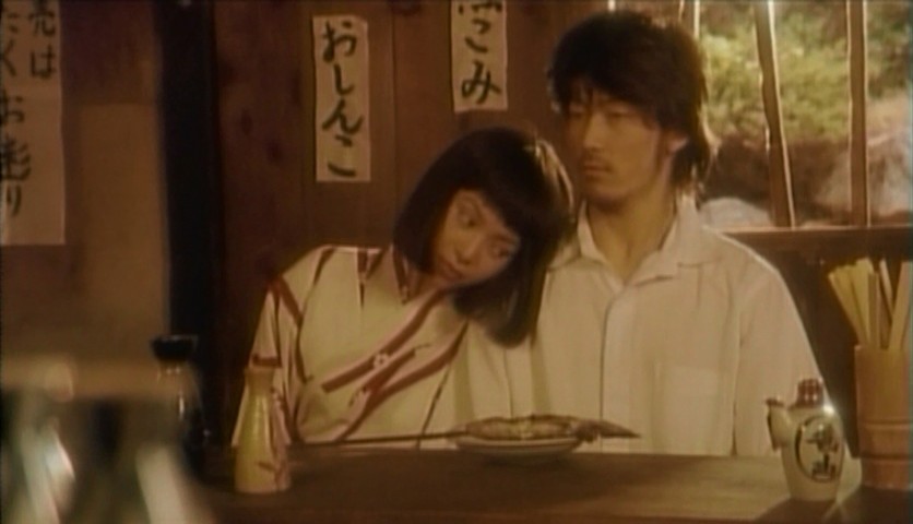 Those familiar with anything from Ishii's catalog will feel right at home in the opening credits, where a bevy of grotesques cavort on the beach like outtakes from Horrors of Malformed Men. This Bruegel-esque scene is in fact one of the drawings being created by the movie's Yoshiharu Tsuge surrogate, as played by Tadanobu Asano (the credits call him "Tsube"), but he tears it up in disgust when he realizes stuff like this isn't going to put bread on the table. His girlfriend, Kuniko (Miki Fujitani, the voice of Rurouni Kenshin's Kaoru), finds a steady job cooking in a worker's dorm, but there's no room for him there and he has to crash with his friend Kimoto (Kazuhiko Kanayama), who does things like grope Tsube in his sleep.