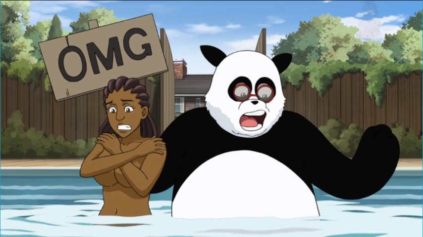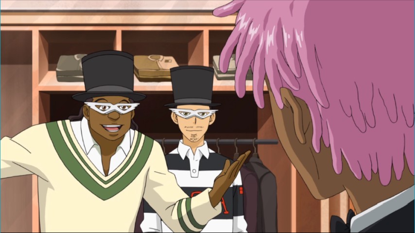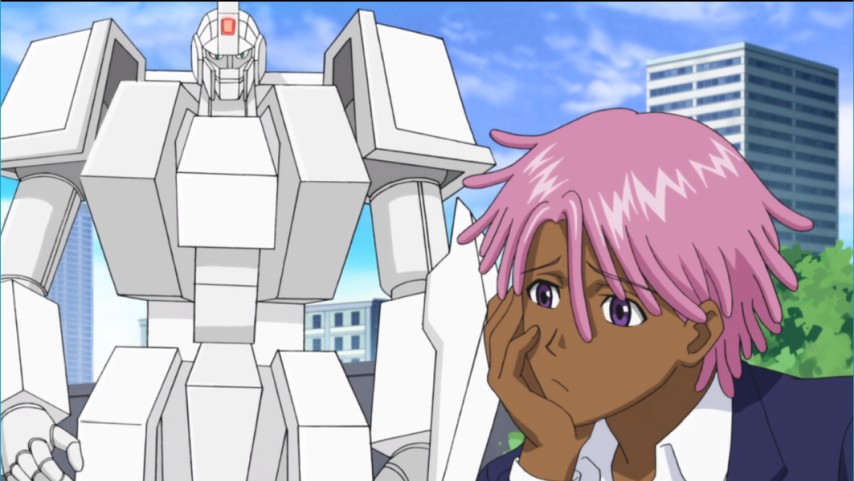 It's all quite obviously a joke, although the joke is only going to be truly funny to those intimately aware of what is being spoofed and how. I am in that number, and once I realized they were kidding this material, I admit to laughing with the show more than I did at it. It wasn't that hard, what with the show tossing in gags like a character named "Sailor Pellegrino" and Kaz's friends sporting tuxedo masks in the same episode. One episode is an extended Ranma 1/2 gag reference, where Kaz's two buddies take a dunk in a pool; one ends up genderswapped and the other turns into a panda. For those with cultural chops hailing from the other side of the Pacific, one episode involves a haunted Damien Hirst sculpture. And the show's own bizarre crop of homegrown memes (Toblerone!) are fast making the rounds as I write this. Seeing what level of dippiness the creators will sink (rise?) to in the next episode is part of the fun — assuming, that is, that your definition of "fun" includes that kind of thing.