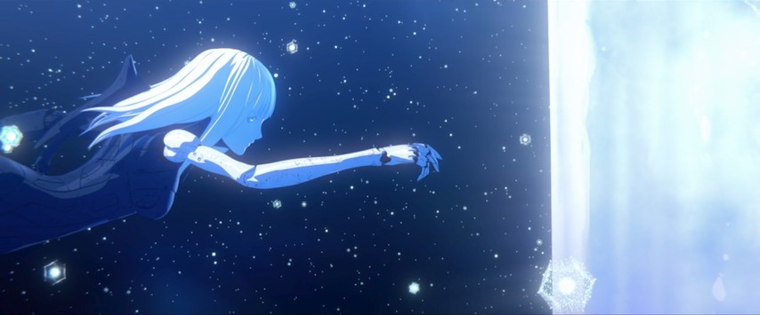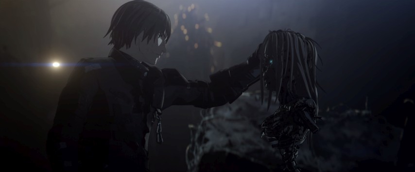 One consequence of BLAME! '17 being more story-driven than its origins is that it doesn't depend as heavily on atmospherics to have a reason to exist. But it still looks sensational and stark — yes, stark even in color, what with Nihei's black-white-and-grey art rendered in metallic blues, slate grays, and impersonal LED reds. Nihei's other Netflix manga-to-anime adaptation Knights of Sidonia was animated by the same production outfit, Polygon Pictures, and their all-CGI approach was a great complement to Nihei's Brutalist design work. It's even more fitting here, both because BLAME! was the progenitor for the look in the first place and because Polygon has polished its approach all the more since.