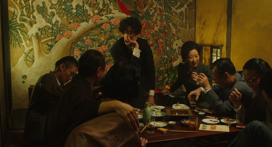 What works best in the film, then, is the little moments that illustrate larger points, despite there being not enough connective tissue between all of them to really hold things up. Dazai's problem was that he got a little too good at convincing everyone around him that he needed to stay a mess, both for his own sake and everyone else's. Whether or not they believed it is beside the point; they sure acted like they believed it. Hence the moment where Dazai's wife, with their children in tow, blunders across him in a clinch with one of his lovers, and she tells the kids: "Don't disturb your father. He's working."