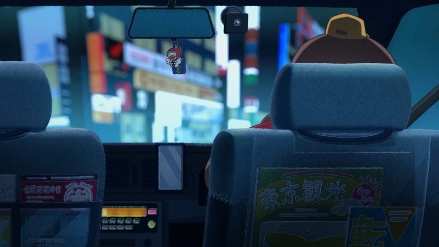 At first the story doesn't seem to be going in any particular direction. Various fares come and go, like Kabasawa, the hippo, who snaps selfies with Odokawa and is trying to turn himself (without much success) into a viral sensation. An apparently dirty (meerkat) cop shakes down Odokawa for the SD card from his dashcam, allegedly looking for a (baboon) criminal named Dobu. Then Dobu shows up in Odokawa's cab with a gun to the back of his head. He's looking for everything he can find about a girl who went missing a couple of days ago, and who may have been in Odokawa's cab right before she vanished.
