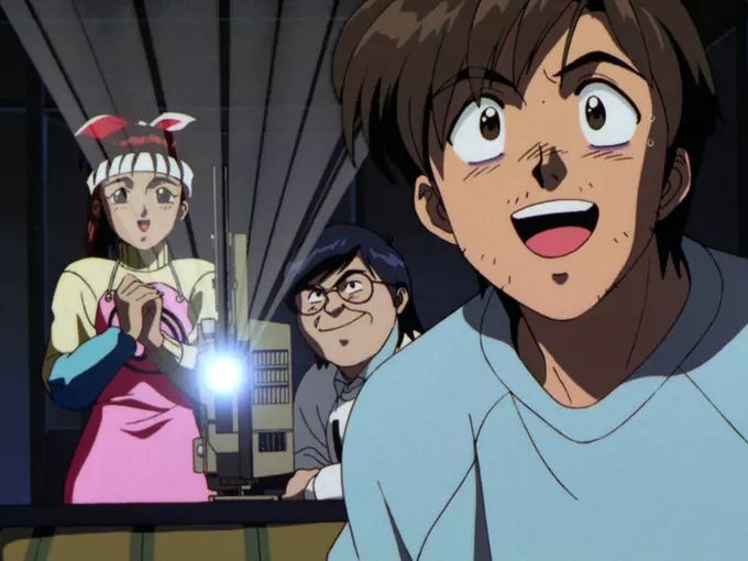 The other big reason this stuff lands with a thud now is is that GAINAX & Cie. are themselves ascended geeks, and so the whole thing is tinged with an unpleasantly revanchist flavor. The 8mm "garage anime" story in the second half is a nod to when a gang of amateur animators got together and produced a short subject for the opening ceremonies of the 1981 Daicon III and 1983 Daicon IV conventions. Said short became a cult item — now undistributable because of its questionable legal status — and helped kick-start the career of a certain animation studio. Said studio was GAINAX, and so what was once ostensibly a nod to the group's own origins now comes off as a distancing act: We, the ones who actually make things instead of just consuming them, are putting you, the mere consumers, in your rightful places.