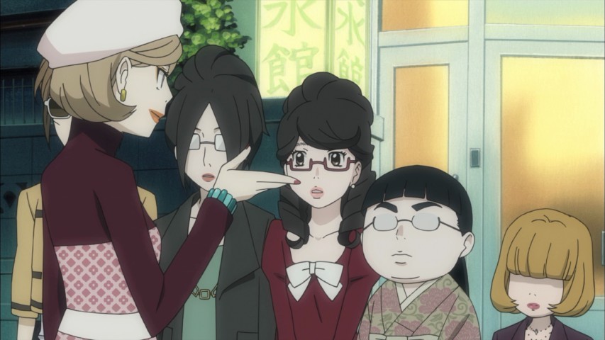 The other way the show develops this is through a plot point I worried about at first. When Kuranosuke learns Amamizukan is to be demolished, he rallies the Amars to show up and protest — and to dress for success in the process by outfitting each of them in a way that flatters their looks and builds. At first I balked; I worried the show's argument would amount to, the world revolves around appearances, so suck it up already. But the real pitch, as embodied by Kuranosuke, is both more realistic and more uplifting. Yes, the world revolves around appearances, but that's all the more reason to own that and make it yours. Make it yours before someone else does it for you, because they'll almost certainly do it in a way you won't want.