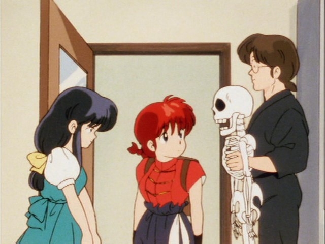 Not that Ranma notices most of the time, since from what he sees, Akane only has eyes for Dr. Tofu, the cheery, bespectacled bonesetter and masseur who is drafted in to repair the damage done to most every cast member (all too often, it's Ranma) during one of their periodic dust-ups. And Tofu himself only has eyes for Akane's yamato nadeshiko sister Kasumi. And the school's champion kendo student, Kuno, has (boiling mad, obsessive) eyes for Akane — at least until he lays said eyes on female Ranma. None of this is helped by the, ahem, intervention of Akane's scheming sister Nabiki, who does things like sell candid snaps of both of them and hawk ringside tickets for whoever's trying to clobber Ranma this time. It has to be said that the show gets more than a little mileage out of female Ranma being a drool object by others, but again it's handled in a way where the emphasis is on the absurdity of the situation, not its kink factor.