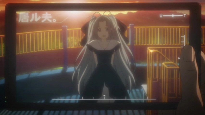 On top of, underneath, and between all of this, another series of plots begin to unfold — so many plots, in fact, that I began to feel like they were bleeding all the air out of the room. Kaito encounters a rogue program on his phone's augmented-reality app, which manifests as a cheery girl that only his phone can display and who points him towards a series of documents concealed around the countryside, each of which can only be unlocked by completing a certain geotagging assignment. The shut-in creator of Kill Ballad, a female otaku who come off as the filthy-minded little sister to Steins;Gate's Daru, enters the story as well, and reveals how her motives for creating the game closely mirror the way Akiho's personal quest was patterned after trying to live up to the example set by her sister. (And that's all before we find out about a conspiracy to use a solar flare to kill billions — the sort of thing that can only be stopped by a plucky bunch of kids with a giant robot, of course.)