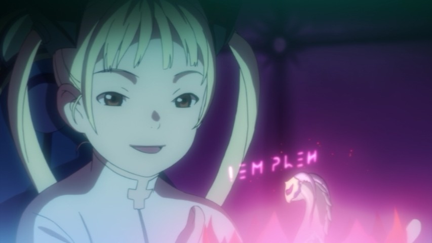 Here is a show that is, in the immortal words of Harlan Ellison, crazy as a soup sandwich. Its plot is risible, shot through alternately with goofus mysticism and eye-rolling coincidence; its storyline is crammed with more material and concepts than it can properly do justice to; it's peppered with silly anime-fandom baiting. But it has one thing that few other shows have, even genuinely good ones: the complete and unrepentant courage of its nutty convictions. Under the same roof in this show, and presented with a straight face, are: Tokyo being turned into a CO2 sink to offset global warming; a teenage leader of a terrorist group whose weapon of choice is a boomerang; a kid hacker manipulating the world's emissions trading market; a whip-wielding transsexual; a prison escape that makes the one in Papillon seem under-engineered by comparison; and a girl priestess who can kill liars with a glance. You can stop counting on your fingers now.