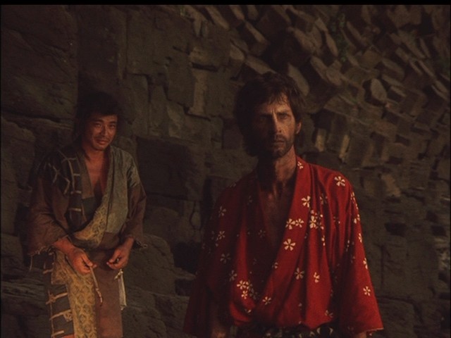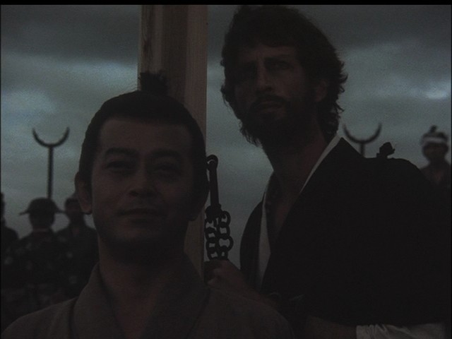 Silence, released in 1971, was co-written by Endō and Shinoda, and while it is still entirely Endō's story it is clearly Shinoda's film. It is also very much a product of its moment in time, and that means it employs filmmaking techniques and aesthetic decisions that may play awkwardly for an audience forty-plus years later. The single biggest one is the casting: Ferreira is not played by a Western actor. Instead, he's played by Japanese veteran actor Tetsurō Tanba, whom Shinoda had experience with before in Samurai Spy. (Haughty samurai roles came naturally to Tanba.)