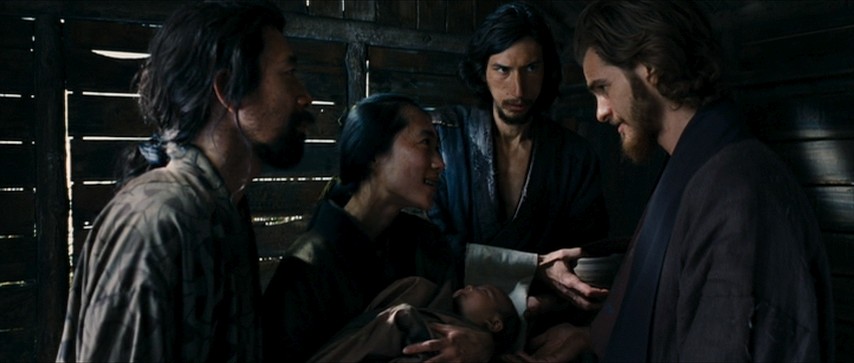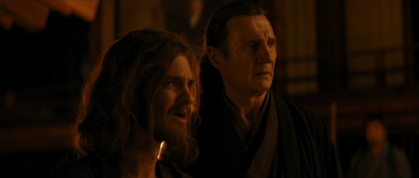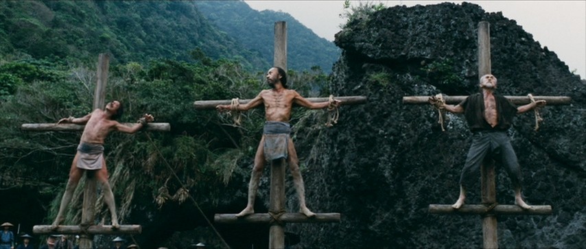 Shinoda had a good eye and used it well, but Scorsese's use of cinema's devices has always been master-class. The technical quality of even the most minimally budgeted movie is orders of magnitude better today than it was forty years ago, but it's still nothing without talent. There's restless energy even in the scenes where the characters do nothing more than sit and engage in verbal fencing matches about the validity of their faith and the sovereignty of their countries. Restless, but not distracting: this is about enhancing what we see, making it sink in all the more, not compensating for it. Scorsese also manages not to make the movie look too picturesque; the seasides and countrysides in the film look gloomy and forbidding, not bucolic.