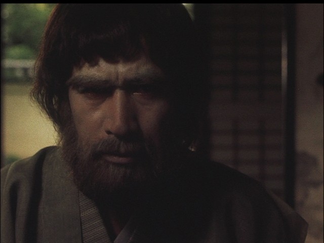 The rest of Shinoda's movie is not nearly as confrontatory in terms of its filmmaking (although the subject matter is another question). Shinoda does not attempt to inject much self-conscious "cinema" into the action, but instead looks for opportunities to point his camera at the faces of his actors and let that be striking. In one scene, an old woman whom Rodrigues is ministering to describes in horrible detail the torments meted out to the faithful. Shinoda does not, say, cut away and show us flash shots or freeze-frames of what's being described, as someone like Kinji Fukasaku might have. He lingers, if at arm's length, on the woman and her story instead. She is more than enough to point a camera at.